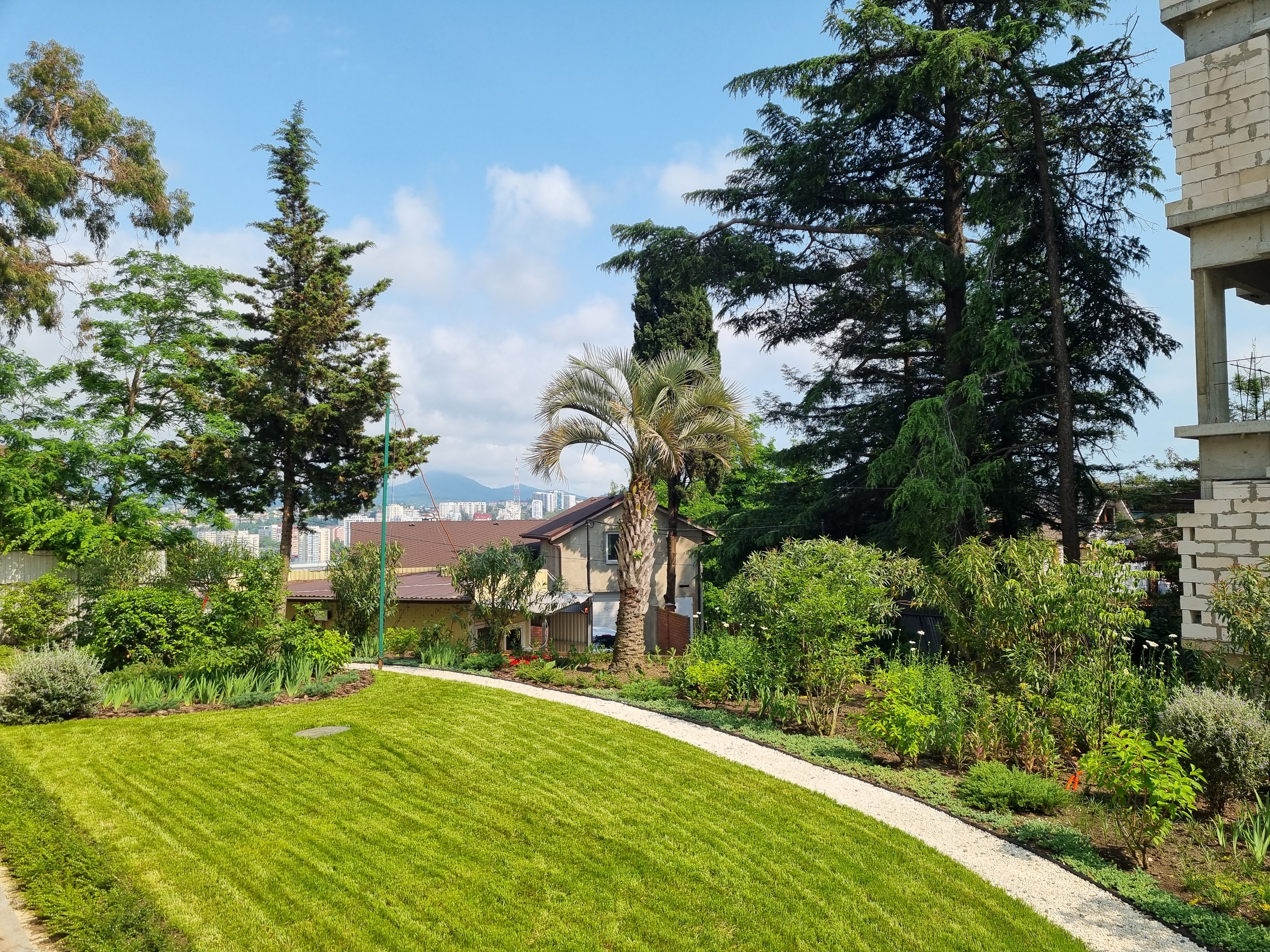 Парковая территория утопает в зелени тропических и субтропических растений.