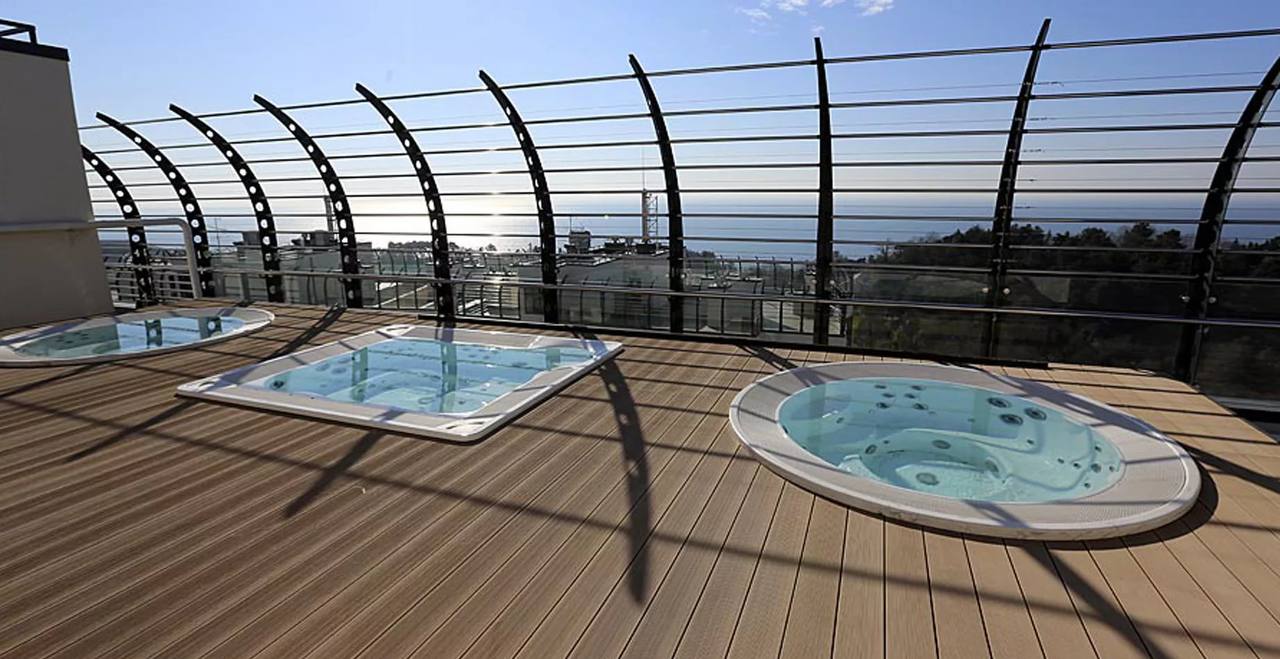 на крыше дома бассейн, джакузи
