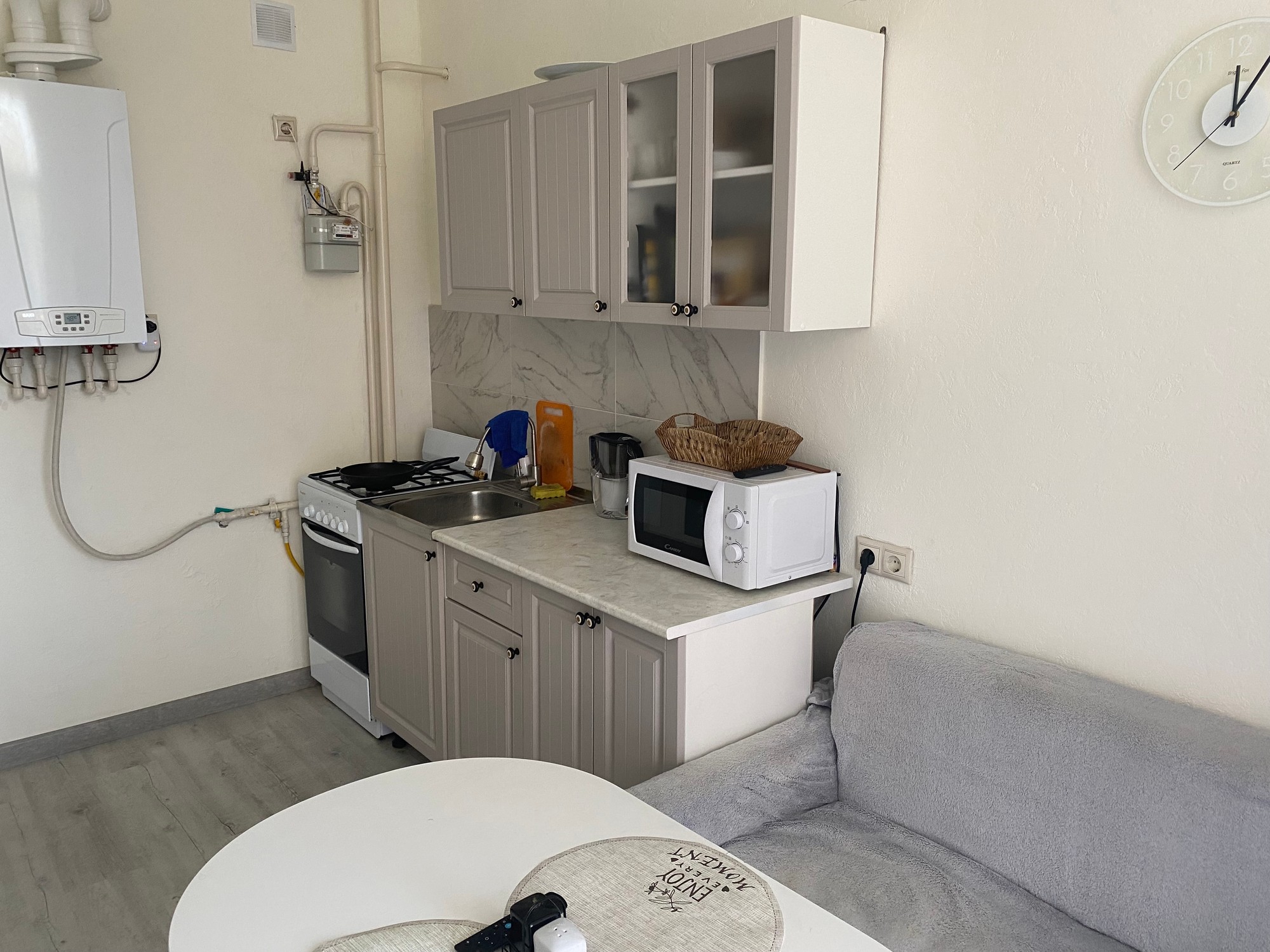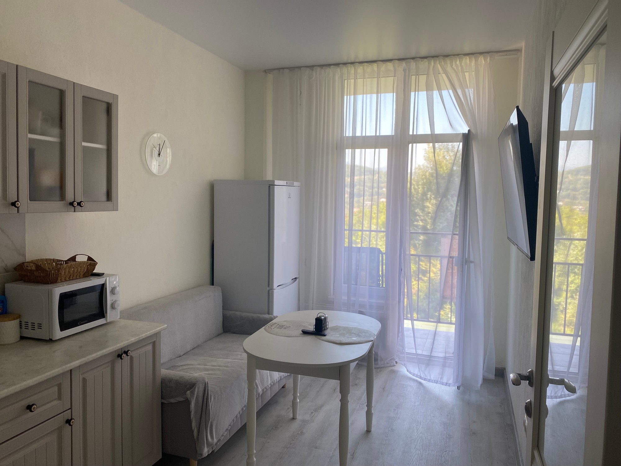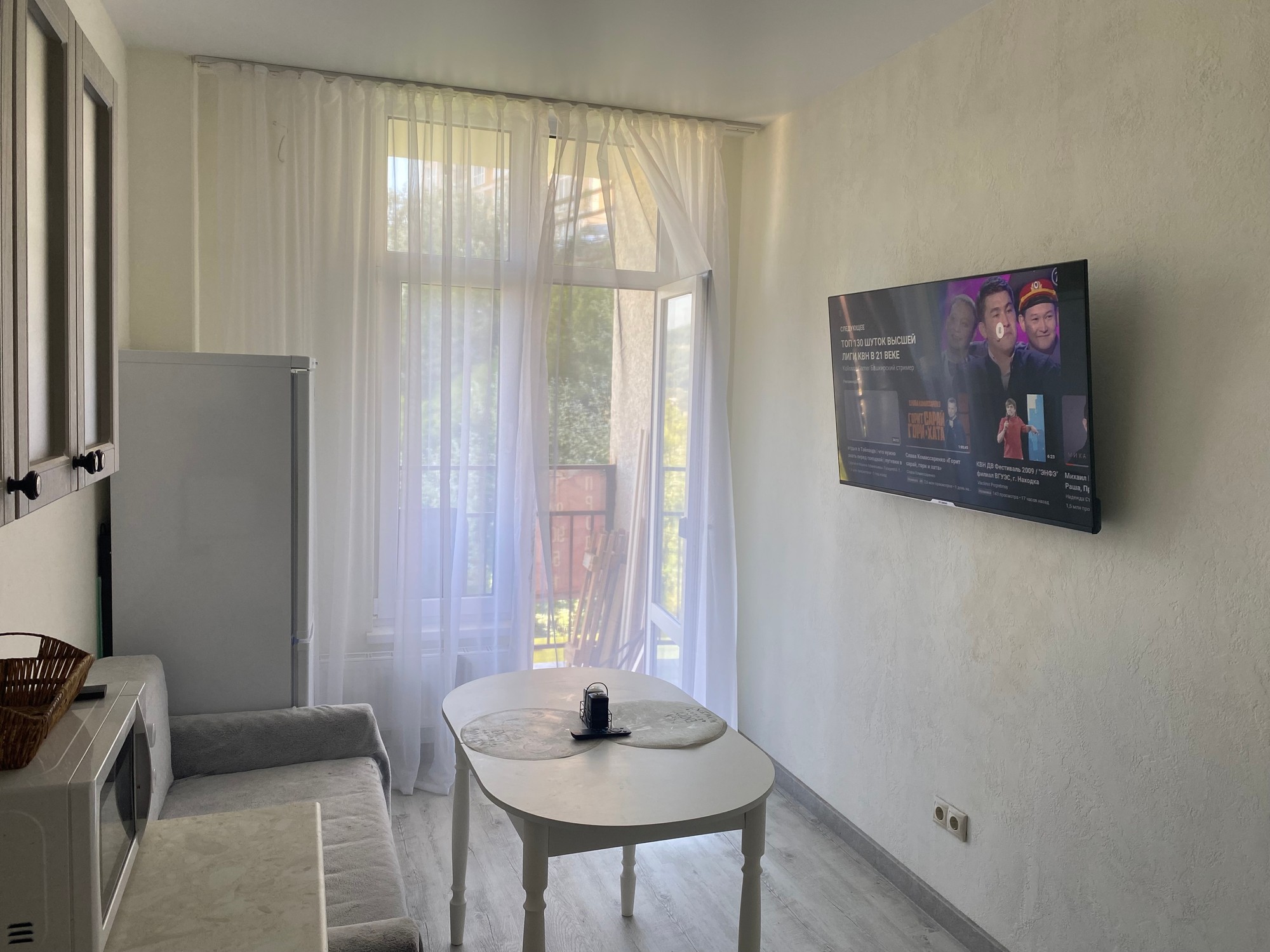 Продаю евродвушку (есть возможность разместить людей в просторном холле). Парковка у дома. Развитая инфраструктура, 100 м. до остановки, аптеки, магазинов. До моря 15 мин. на автомобиле, 20 мин. на автобусе. Новая, качественная мебель и техника. Оборудованная кухня всем необходимым для готовки и приема пищи, двухкамерный холодильник, микроволновка, чайник, плита, посуда. Телевизор Смарт- ТВ, 50 дюймов. Душевая кабинка, стиральная машинка, сушилка, утюг. Большая и удобная двуспальная кровать. На кухне комфортный диван-кровать. В спальне домашний кинотеатр. Квартира чистая и уютная, есть все для комфортной жизни. Панорамные окна.